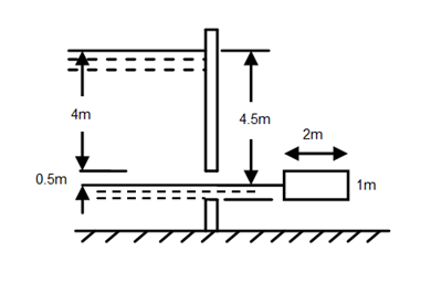 An orifice in one side of a large tank is rectangular in shape, 2 meters broad and 1 meter deep. The water level on one side of the orifice is 4 meters above its top edge. The water level on the other side of the orifice is 0.5 meter below its top edge as shown in fig.