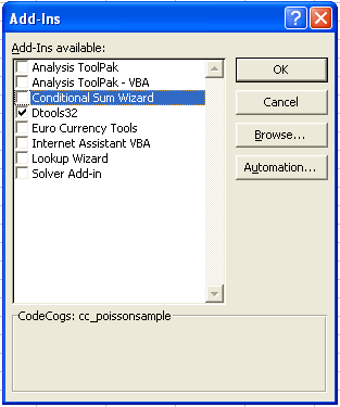 In this example, the file PoissonRandom.xll contained an add-in called Poissonrandom.